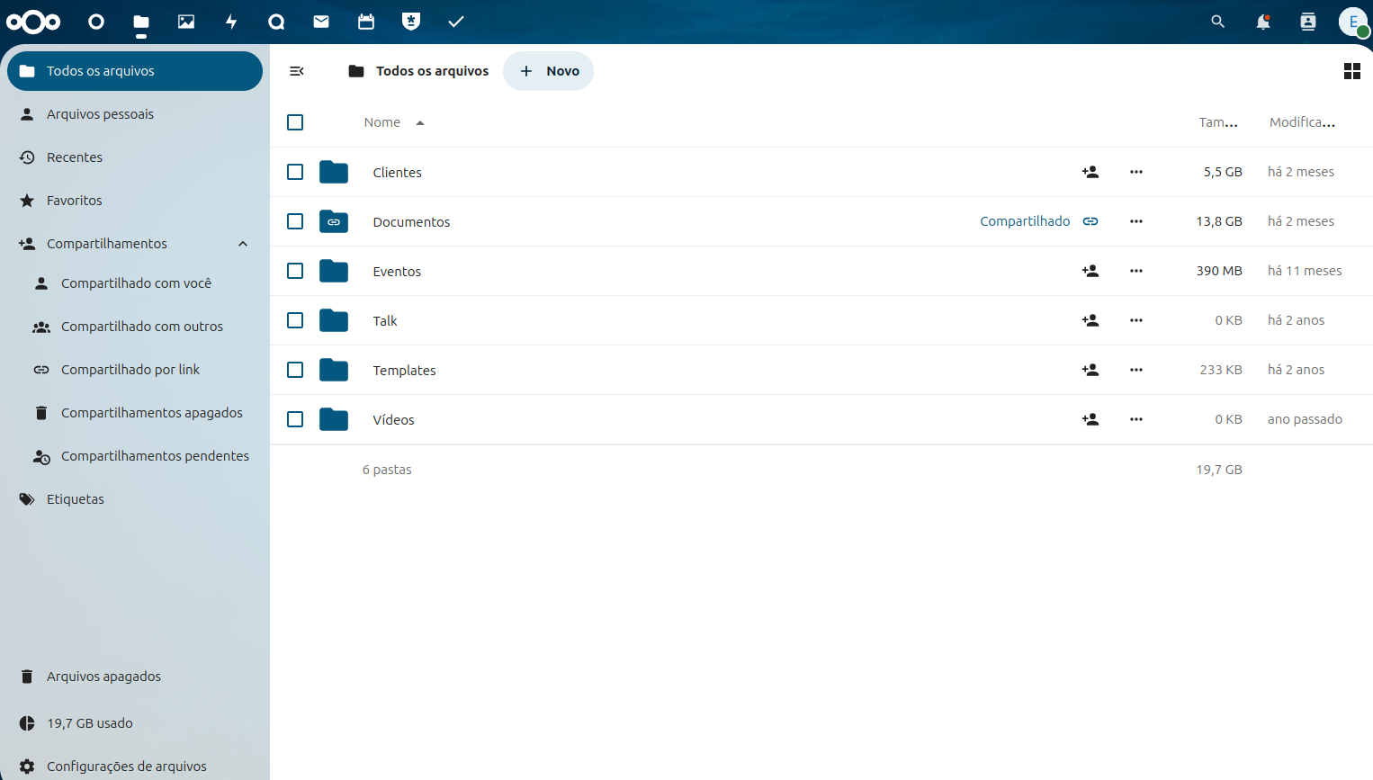 Compartilhe seus arquivos de forma segura, com softwares livres e sem custos de licenciamento. Podendo até armazenar internamente na sua empresa ou até externamente com diversos grupos e permissões